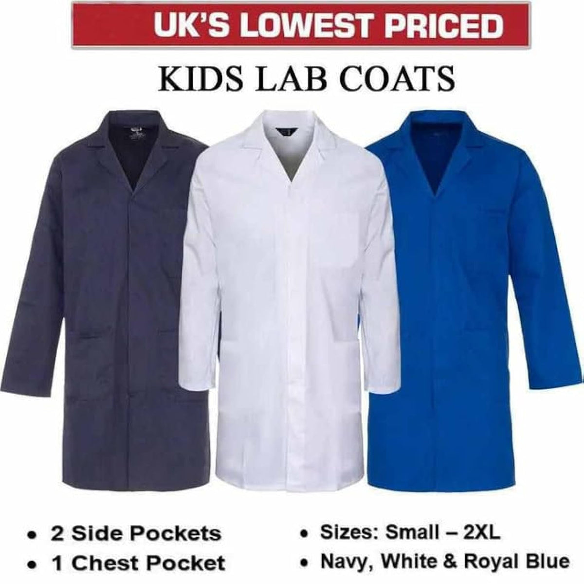 - Lab coat with collar and cuffs